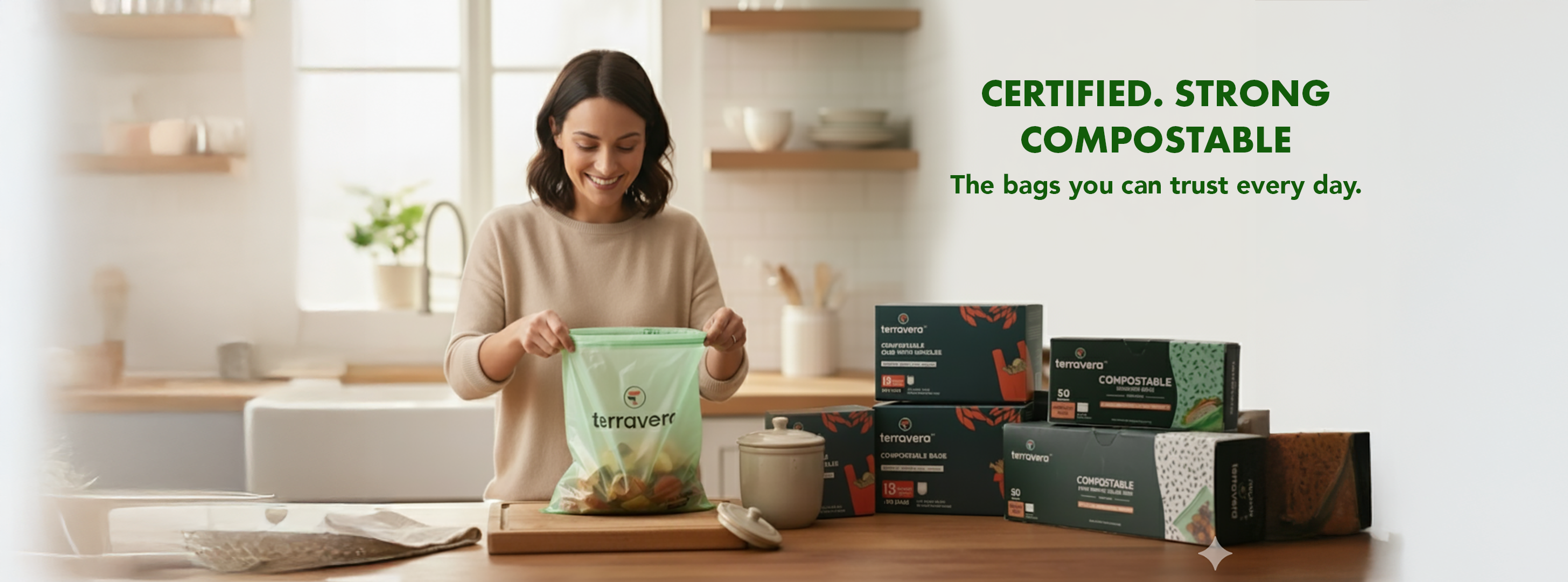 2.6 Gallon Compostable Food Scrap Bags - Handle Tie (100 Count) | BPI & OK Home Certified | Counter Top Bin, Kitchen Trash, Home Compost Bags